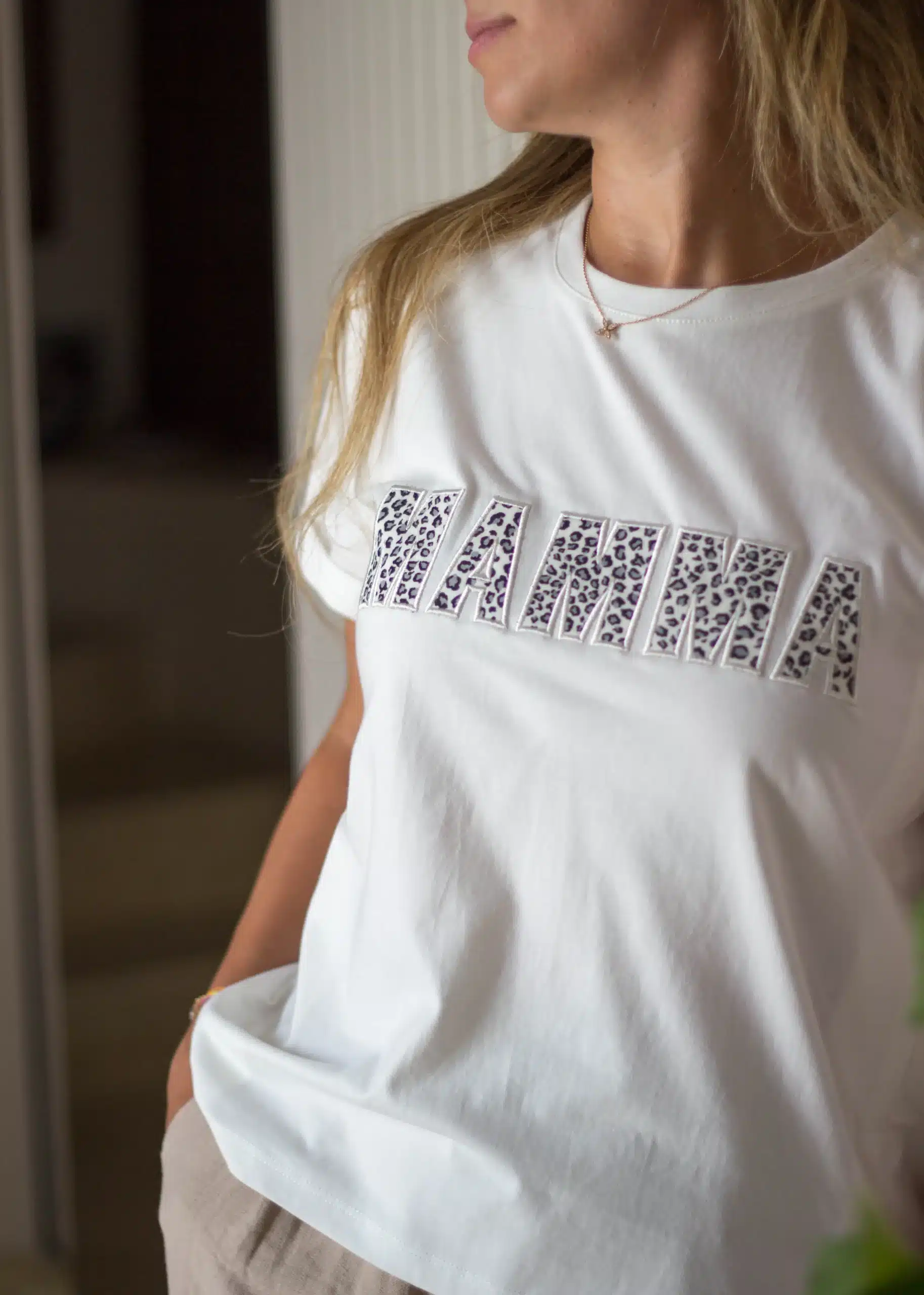 Allaiter avec style ? C’est un grand OUI. Avec notre t-shirt « Mamma » brodé en appliqué léopard, plus besoin de choisir entre confort, praticité et look Ce haut est pensé pour toutes les mamans badass qui veulent nourrir bébé l’air de rien, tout en affichant fièrement leur rôle avec une touche féline.